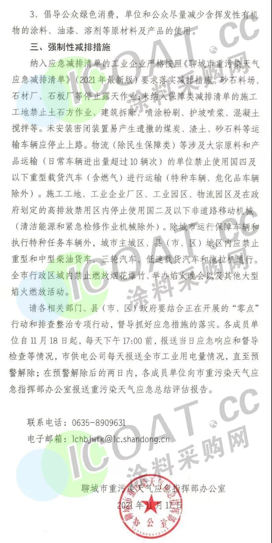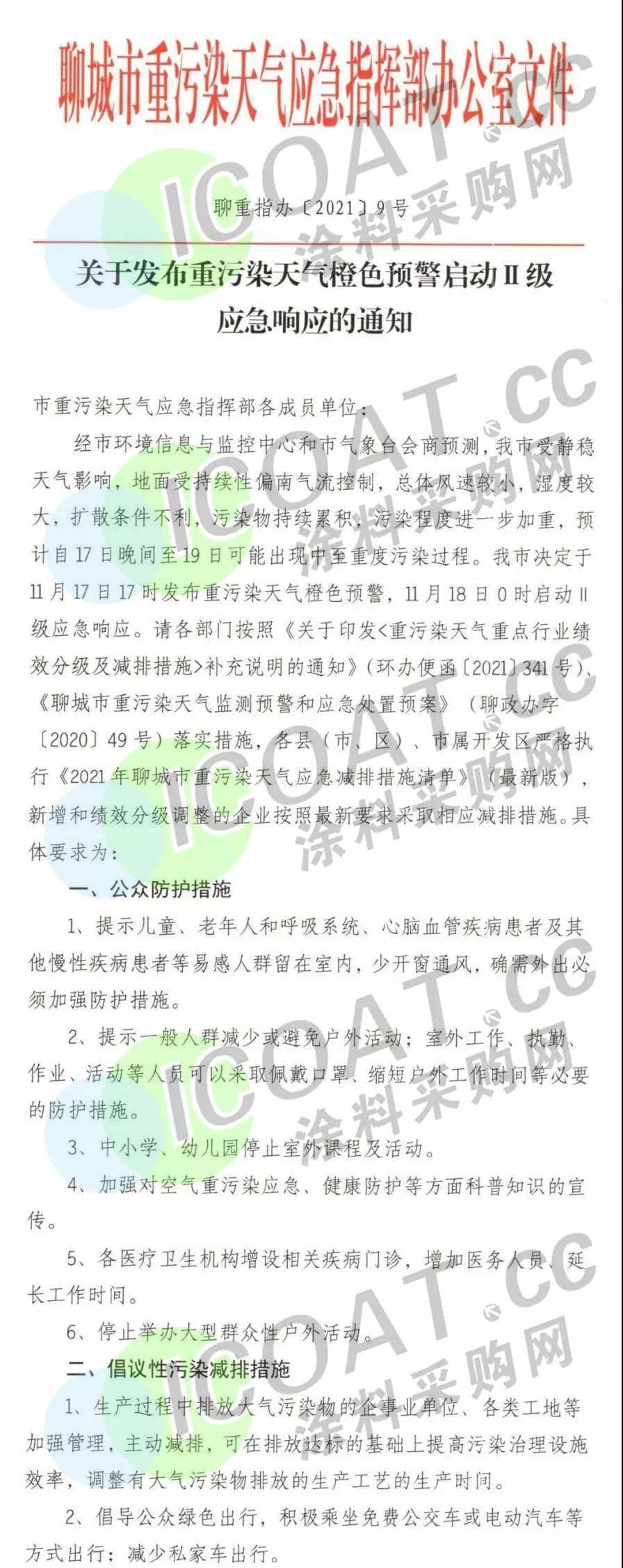 據(jù)涂料采購網(wǎng)了解,除山東聊城外,近期多地迎來重污染天氣,河南、河北、山西、山東、陜西、安徽等8省31市啟動(dòng)重污染天氣應(yīng)急響應(yīng),嚴(yán)格控制重污染企業(yè)減排、實(shí)行交通管制,鼓勵(lì)企業(yè)錯(cuò)峰生產(chǎn)、必要時(shí)停產(chǎn)減產(chǎn)。