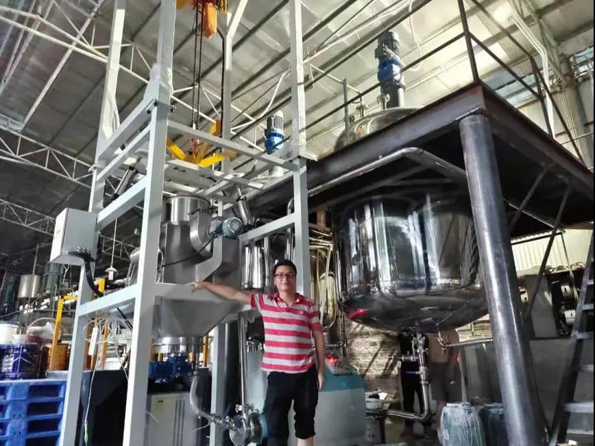 乳膠漆傳統生產工藝流程是物料計量投料——攪拌機分散——調漆——包裝,在這個工藝中有三個短板,①投料產生粉塵,增加除塵和清洗成本;②投料和分散時間較長,顏填料粒徑大,分布不均勻,生產能耗大;③增稠劑需要使用高速分散機長時間化膠,而且不能自動連續化運行。儒佳新推出的乳膠漆生產工藝采用在線分散和增稠劑一體化工藝,生產工藝緊湊,實現了無塵投粉,在線快速分散,在線化膠,極大提升了生產效率,降低了粉塵污染,避免了分散罐內粉體結皮,節省清洗工作。、