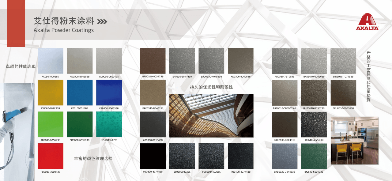 作為全球粉末涂料的領(lǐng)先供應(yīng)商,艾仕得通過精湛的工藝和嚴(yán)格的檢驗(yàn)控制,生產(chǎn)高品質(zhì)的超耐候性粉末涂料,各項(xiàng)指標(biāo)符合AAMA和Qualicoat等粉末涂料標(biāo)準(zhǔn)要求。旗下產(chǎn)品包括艾麗塔™Alesta ®AD、艾麗塔™Alesta ®SD、艾麗塔™Alesta ®UD等,廣泛應(yīng)用于建筑領(lǐng)域,產(chǎn)品擁有豐富的色彩、優(yōu)異的光澤和高度的顏色保持性,且不含揮發(fā)性有機(jī)化合物(VOC)及特定有害空氣污染物(HAP),這使得其在廣泛應(yīng)用于高端住宅項(xiàng)目的同時(shí),也成為商業(yè)建筑項(xiàng)目的理想之選。