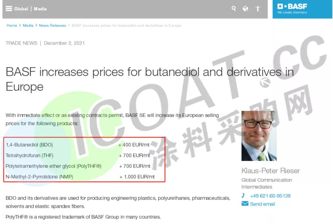 上調(diào)歐洲地區(qū)丁二醇及其衍生物的價(jià)格: