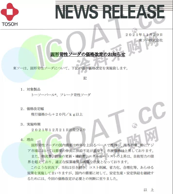 東曹株式會(huì)社:產(chǎn)品調(diào)漲25%-30%