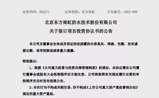 這是2022年東方雨虹發(fā)布的第二則投資!