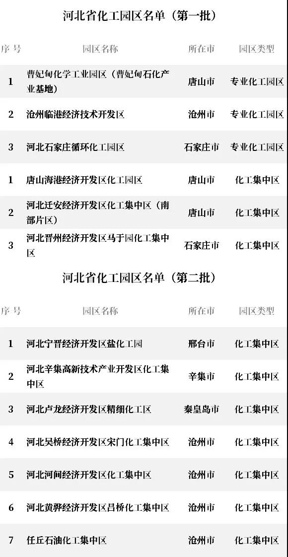 截至目前,河北省共認定三批化工園區22家,包括3家專業化工園區和19家化工集中區。