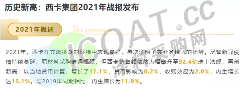 而在不久之前,西卡地坪與涂料事業部舉辦“2021西卡地坪涂料6億慶典”活動,慶祝西卡地坪與涂料事業部銷售額首次突破6億大關,無疑體現出了西卡集團在2021年的輝煌與碩果。那么涂料企業在剛剛過去的2021年究竟是何狀態呢?為了解真相,涂料采購網特查閱了涂料龍頭企業2021年的業績報告。