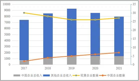 圖2 近年來全球化工50強榜單中國企業數量及收入情況(單位:億美元、個)