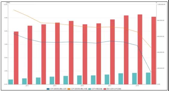 圖8 近年來全球及中國國內生產總值變化情況