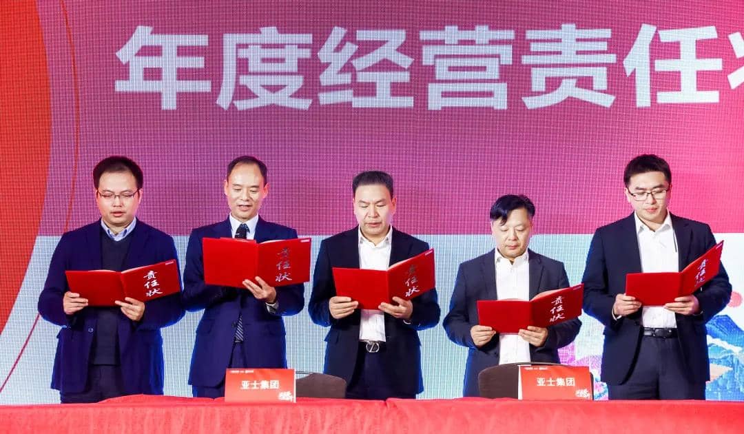 “目標就是使命!目標就是責任!目標就是軍令!”集團和三中心、區域總部以及各事業部依次簽署了2022年度經營責任狀,并作出鄭重承諾:“為亞士而戰,為榮譽而戰,使命必達!責任必達!目標必達!”