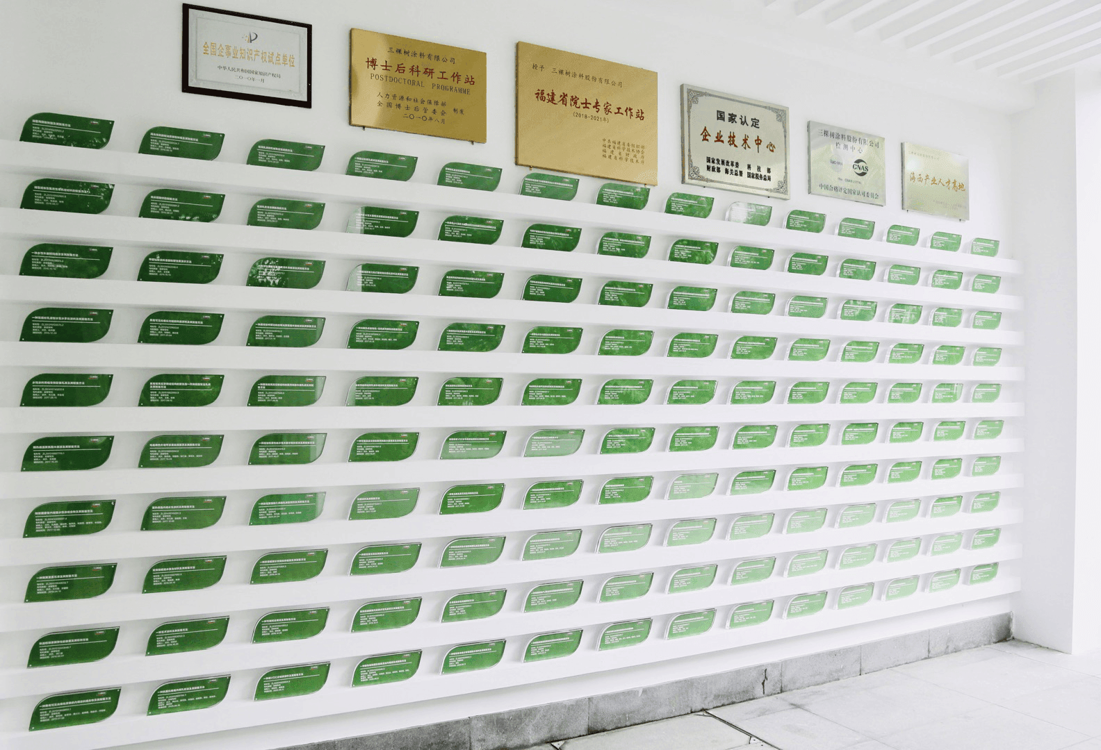 在產(chǎn)品研發(fā)上,三棵樹一貫堅(jiān)持對(duì)環(huán)境友好型和節(jié)能低碳產(chǎn)品的研制,致力于打造涂料、防水、保溫、地坪、輔材、施工“六位一體”綠色建材一站式集成系統(tǒng)。擁有博士后院士專家工作站,國家認(rèn)定企業(yè)技術(shù)中心,國家認(rèn)可CNAS實(shí)驗(yàn)室和國際化千人技術(shù)研發(fā)團(tuán)隊(duì)。三棵樹依靠雄厚的科研實(shí)力,不僅能夠?qū)崿F(xiàn)自主研發(fā),還通過與高校和科研機(jī)構(gòu)深入交流以及跨國合作,始終走在科技創(chuàng)新前沿。三棵樹現(xiàn)擁有500多件授權(quán)專利,研制了30多個(gè)一級(jí)保密配方,目前已研發(fā)8000多支產(chǎn)品,滿足用戶全屋一站式綠色建材需求。