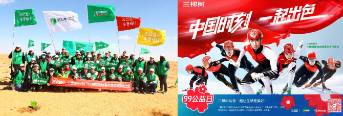 同時(shí),三棵樹多次與支付寶“螞蟻森林”、騰訊“99公益日”等展開跨界合作,開啟“互聯(lián)網(wǎng)+公益”新模式。此外,還通過線上認(rèn)領(lǐng)、線下項(xiàng)目地探訪等形式,拉動(dòng)大眾助力“一億棵梭梭”公益項(xiàng)目。