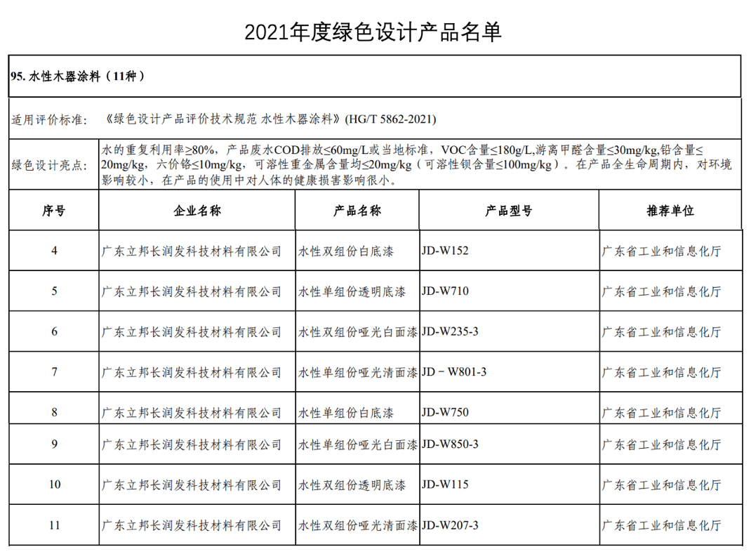 立邦八款水性木器漆上榜國家工信部“綠色設計產品”名單