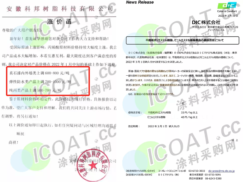 漲價函滿天飛!乳液、樹脂、涂料等多個類別紛紛調漲!
