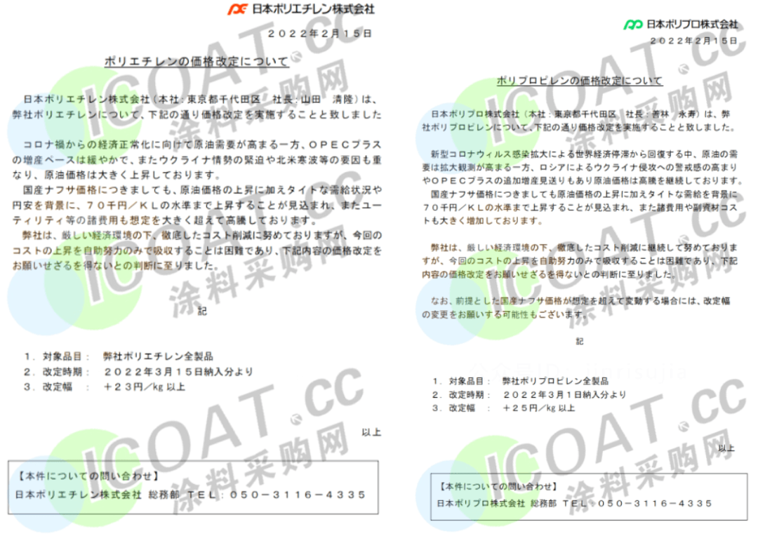 聚丙烯株式會社:自3月1日起,所有PP產品上調25日元/kg,約合1373元/噸。