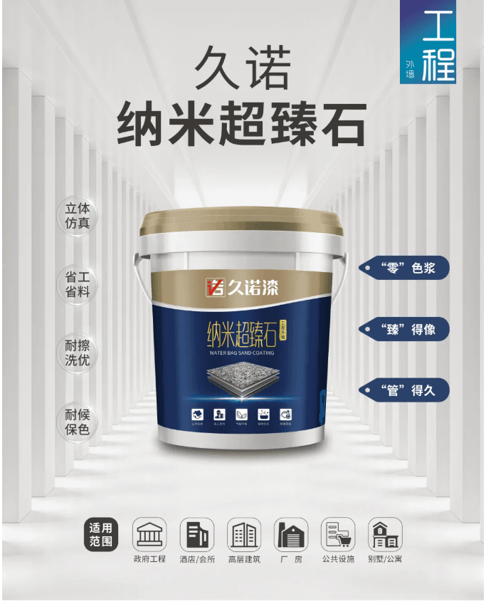 作為建涂場域的“高級(jí)玩家”,江蘇久諾建材科技股份有限公司(以下簡稱“久諾新材”)見狀向這些行業(yè)痛點(diǎn)問題“宣戰(zhàn)”。推出節(jié)能更環(huán)保,仿真度更逼真,施工更高效的新一代零色漿的水包砂產(chǎn)品:納米超臻石用以填補(bǔ)市場空白。
