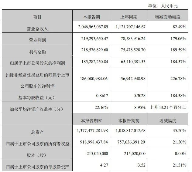 安納達(以下簡稱“公司”)近日披露2021年度業(yè)績快報,報告期,公司實現(xiàn)歸屬于上市公司股東的凈利潤為1.85億元,同比增長184.57%。公司營業(yè)收入、營業(yè)利潤、利潤總額、歸屬于上市公司股東的凈利潤較上年度分別增長82.49%、179.06%、189.59%、184.57%,主要原因: