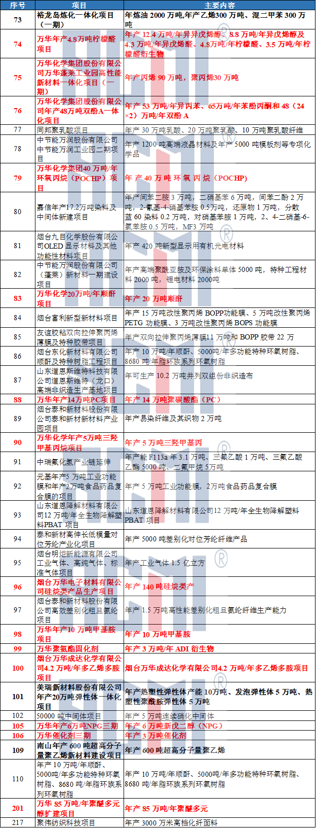 此次確立的300個建設類項目中,有36個重點化工項目。包括裕龍島煉化一體化項目,萬華化學蓬萊高性能新材料一體化等一系列項目、美瑞新材20萬噸彈性體一體化項目、南山集團600噸超高分子量聚乙烯項目等。其中,萬華化學有14個化工項目入圍,在眾多項目建設中表現最為亮眼。