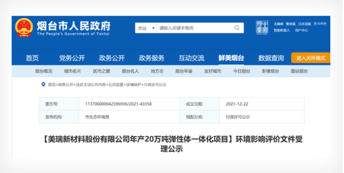 2021年12月,煙臺市生態環境局對該項目進行環評審批。