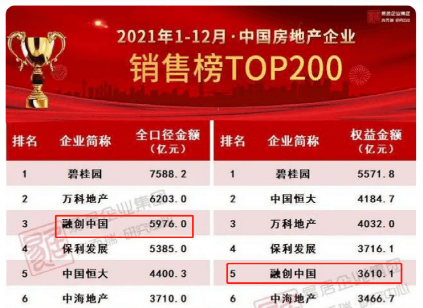 公告顯示,2021年上半年,其累計實現合同銷售金額約3207.6億元,同比增長64%;但2021年全年其累計實現合同銷售金額約5973.6億元,同比僅增長4%,下半年銷售塌方明顯。這也導致其2021年權益口徑銷售金額被保利地產反超,跌至全國第五。