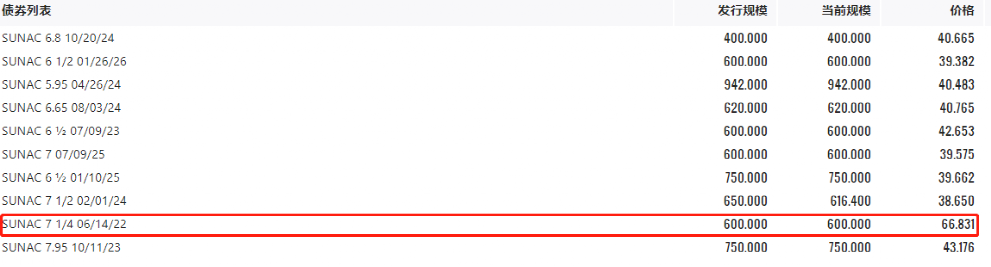 28日融創旗下物業公司融創服務也跟著下殺,收盤跌幅7.92%報6.63港元/股,從高點下來8個月時間也已經膝蓋斬不止。而債券方面,境內債跌幅最高的是“21融創03”,達到10%,百元面值報53.5元/張,“21融創01”也跌了7.85%,百元面值報59.9元/張。境外美元債“SUNAC 7 1/2 02/01/24”“SUNAC 6.65 08/03/24”等跌幅均超過了6%。