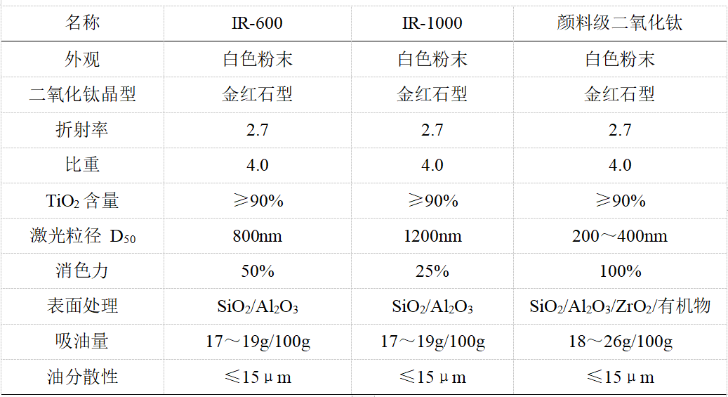 IR系列近紅外反射二氧化鈦性能指標