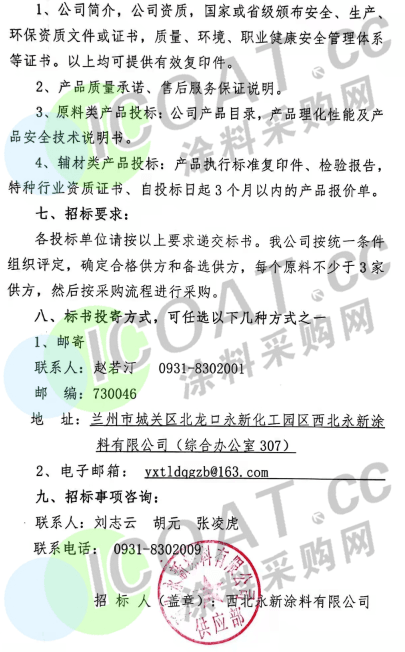 四、投標(biāo)地址:西北永新涂料有限公司(蘭州市城關(guān)區(qū)北龍口永新產(chǎn)業(yè)園)