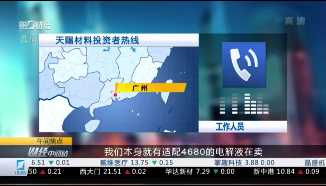 這一背景下,國內外頭部鋰電池供應商正加速推進4680電池產線建設。記者以投資者的身份致電天賜材料,公司表示,目前有適配4680電池的電解液在售,但是4680電池目前并沒有大規模量產。