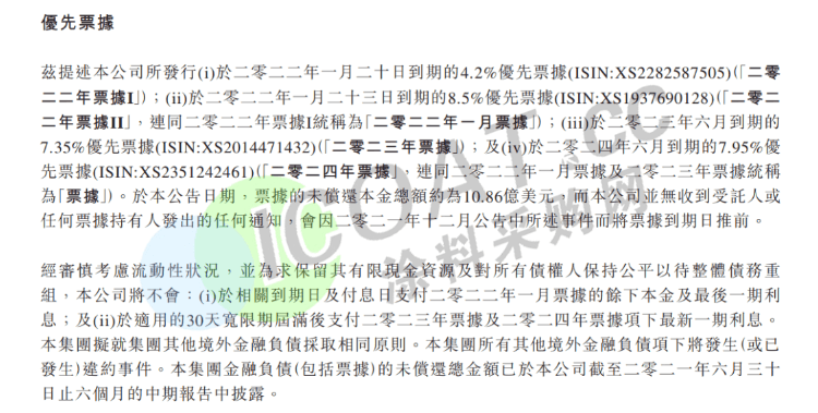 中國奧園宣布,將不會支付即將于2022年1月20日本金總額為1.88億美元及1月23日到期本金總額為5億美元的美元票據支付余下本金及最后一期利息。截至2022年1月20日,奧園未償美元債務總額高達32億美元。
