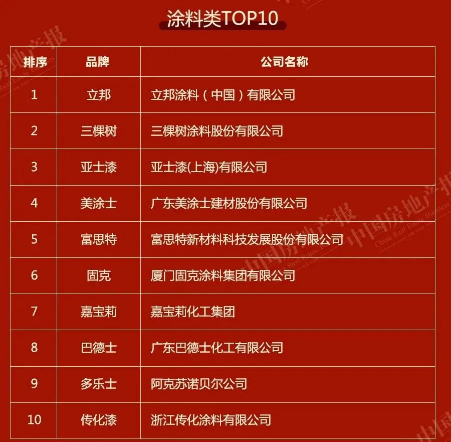 據中國百強房地產百強房企優選供應商品牌部,涂料類,亞士漆、美涂士、富思特、固克、巴德士、多樂士、傳化漆上榜。這些曾以同百強企業合作為驕傲的涂料龍頭企業,如今卻面臨巨大的危機。