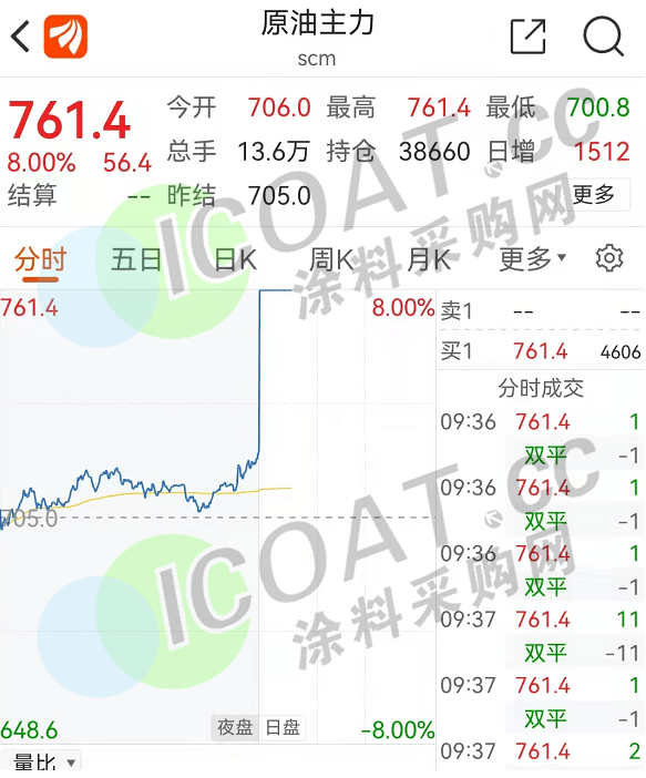 受此影響,國內(nèi)原油系也火速開漲。周一(7日)開盤,國內(nèi)原油期貨主力暴漲8%!直接“封死漲停”!