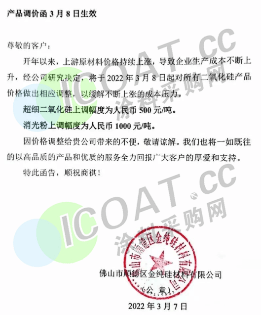 這與此前化工人預(yù)測(cè)的,海外巨頭拉動(dòng)國內(nèi)鈦白粉企業(yè)漲價(jià)的說法不謀而合。據(jù)涂料采購網(wǎng)了解,近期不少化工企業(yè)發(fā)函宣布產(chǎn)品價(jià)格上漲,涵蓋顏料、膠類、聚酯樹脂、消光粉等多種產(chǎn)品,可謂是種類繁多。