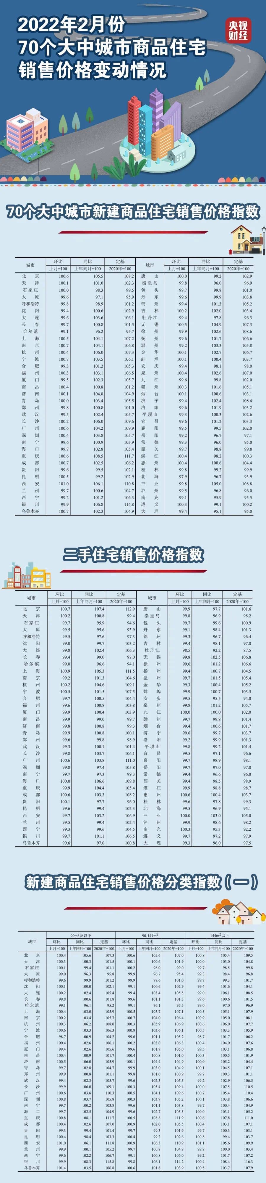 國家統計局近日發布數據顯示,2022年2月份,70個大中城市中,一線城市新建商品住宅和二手住宅銷售價格環比上漲,二三線城市環比持平或下降;一二線城市商品住宅銷售價格同比漲幅回落或持平,三線城市同比下降。