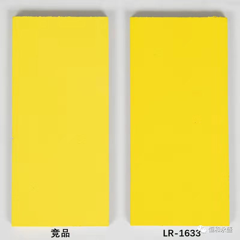 實(shí)驗(yàn)結(jié)果:試板均未發(fā)現(xiàn)起泡、剝落、裂紋等涂膜病態(tài)現(xiàn)象;但競(jìng)品漆板有明顯黃化現(xiàn)象,而LR-1633漆板沒(méi)有,對(duì)比可以看出,LR-1633優(yōu)于競(jìng)品。
