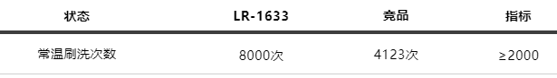 實(shí)驗(yàn)結(jié)果:LR-1633、競(jìng)品耐刷洗均≥2000,合格。采用LR-1633無(wú)機(jī)硅酸鹽乳液耐刷洗方面有著更好的表現(xiàn)。