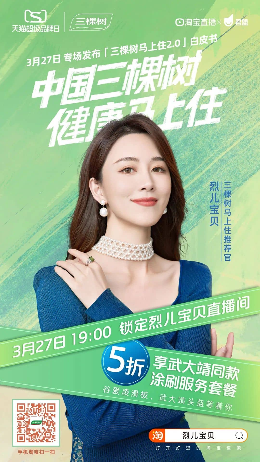有服務(wù)升級(jí),更有福利升級(jí)。3月27日超品日當(dāng)天,19:00鎖定烈兒寶貝直播間,5折享武大靖同款涂刷服務(wù)套餐。“中國(guó)三棵樹 健康馬上住”和冬奧冠軍一起,見證三棵樹天貓超級(jí)品牌日,和健康美好的新生活相約。