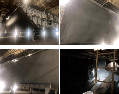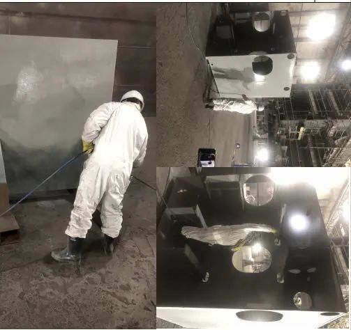 而面漆使用的油漆為水性氟碳面漆 KL-Gard 0870提供優異的耐候性及保光保色性和耐風化特性,適應于高層大樓、市政橋梁、體育展館等對外觀要求較高的市場。待面漆固化后測得平均膜厚為 279um,符合油漆膜厚的最低標準且面漆成膜性良好。整體噴涂完后,水性氟碳面漆漆膜光滑平整,有較好的整體外觀效果。
