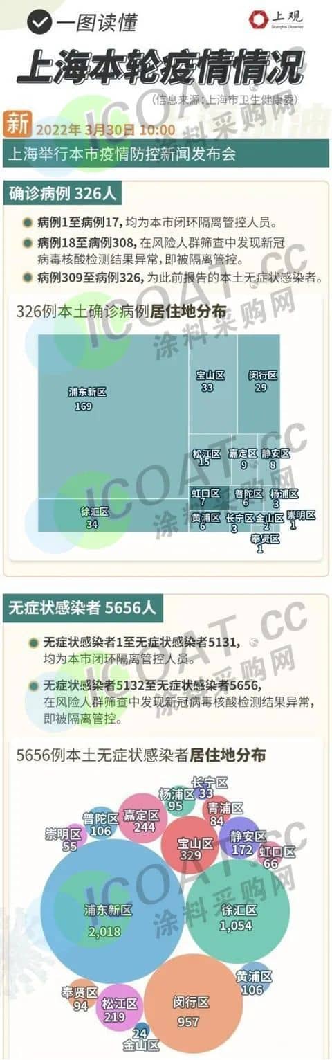 據(jù)國(guó)家衛(wèi)健委數(shù)據(jù),截至3月30日15時(shí),全國(guó)新增確診2329例,新增本土1565例,現(xiàn)有確診269979例,累計(jì)確診455796例,其中吉林省1150例,上海市326例;新增本土無(wú)癥狀感染者本土7090例,上海市5656例,吉林省1032例。最近2天,上海市累計(jì)報(bào)告本土感染者超10000例……