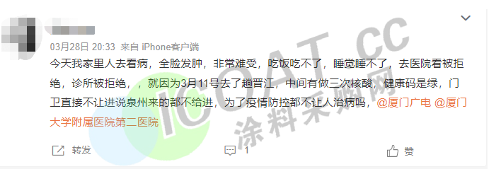 某網(wǎng)友表示,家人生病去醫(yī)院遭拒診,盡管健康碼和核酸檢測(cè)都是合格的,但仍遭醫(yī)院拒絕。