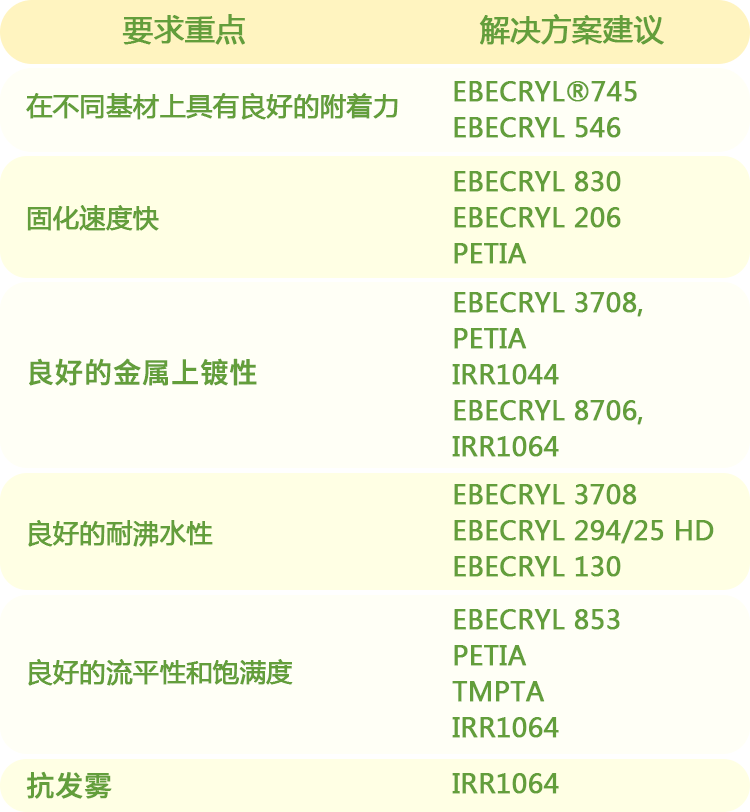 改善基材的表面缺陷,并實現高光澤/反光金屬表面,是最主要的解決方向,以下針對各項要求重點,提供解決方案建議,提供不同應用場景中的多種選擇。