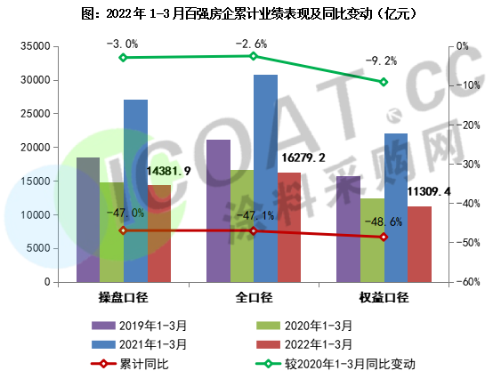 在剛剛過去的3月,中國房地產行業下行壓力持續,企業銷售同比降幅較1、2兩月進一步擴大。TOP100房企單月僅實現銷售操盤金額5115.4億元,同比降低52.7%。累計業績來看,1-3月百強房企的整體業績規模同比大幅降低47%,可謂是開局慘淡。具體來看,一季度有逾8成的百強房企累計業績同比降低,其中近4成企業的降幅高于50%。