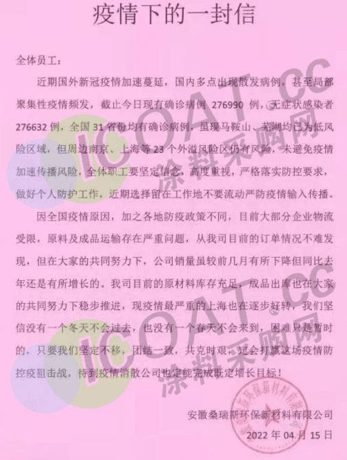 安徽桑瑞斯環保新材料:目前大部分企業物流受限,原料及成品運輸存在嚴重問題,希望堅定不移、團結一致、共克時艱。