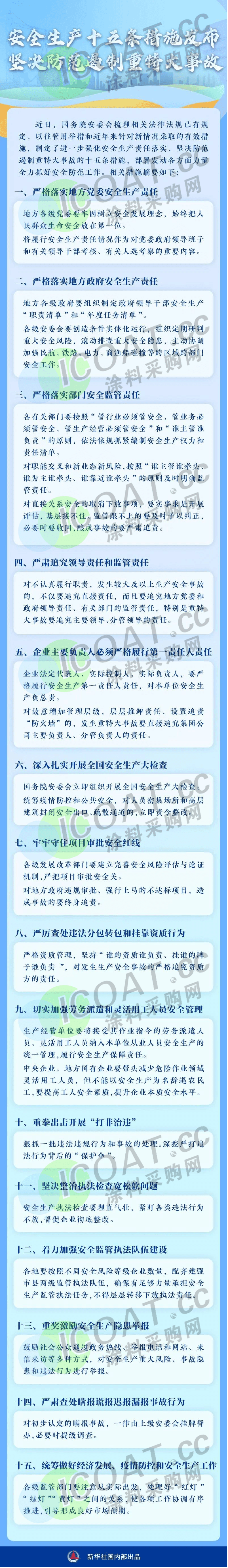 全國安全生產大檢查綜合督導將重點檢查安全生產十五條措施落實情況,進一步推動各地區、各有關部門真正樹牢夯實安全發展理念,健全安全生產責任體系,同時,安全生產考核巡查將按照國務院安委會印發的年度考核要點,通過多種方式核準查實存在的突出問題,對各地區、各有關部門年度安全生產工作情況作出準確評價。而后,山東、江蘇、江西、湖北等十幾個省市地區發布通知:在全省范圍內開展安全生產大檢查。