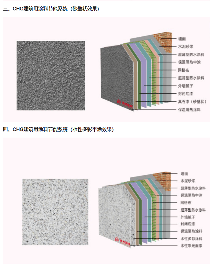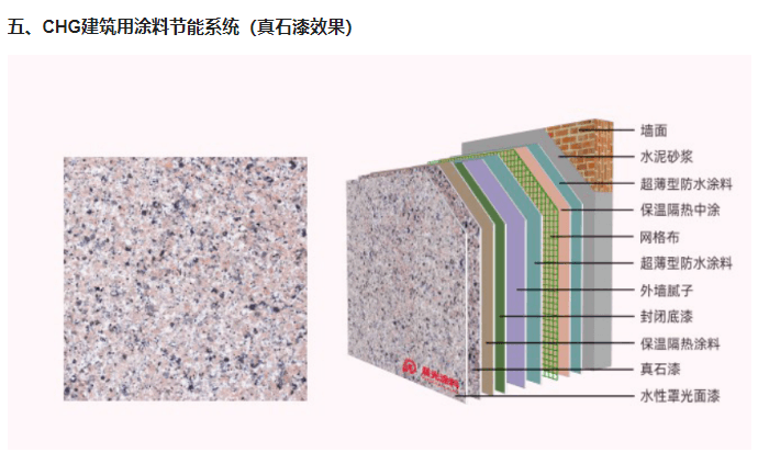 值得關(guān)注的是,作為新型建筑節(jié)能產(chǎn)品,CHG建筑用涂料節(jié)能系統(tǒng)主要用于外墻外側(cè),通過(guò)熱工計(jì)算,得出施工必要數(shù)據(jù)。系統(tǒng)能有效地阻隔熱量傳遞,具有優(yōu)良的絕熱性能,適用于有夏季防熱要求的地區(qū)。同時(shí),在保溫領(lǐng)域它改變了傳統(tǒng)的保溫隔熱方式,綜合途料與保溫材料,節(jié)能與裝飾的多重特性,一經(jīng)問(wèn)世,普遍受到世界各地建筑裝飾界的好評(píng)與推薦。