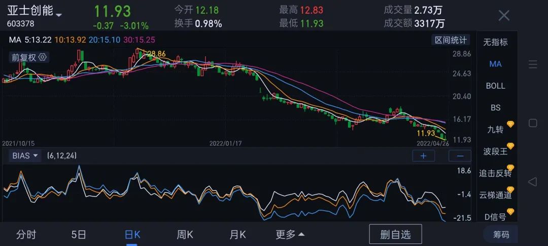 亞士創能股價下跌4.79元,跌幅28.03%,市值蒸發14.3億元;