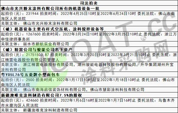 部分涂料企業司法拍賣
