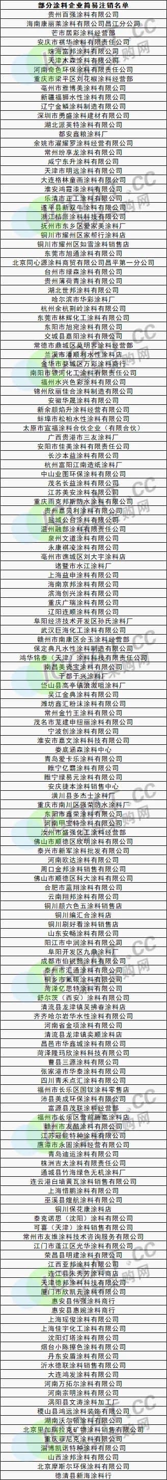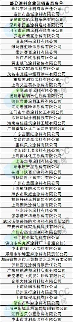 部分涂料企業破產重整名單