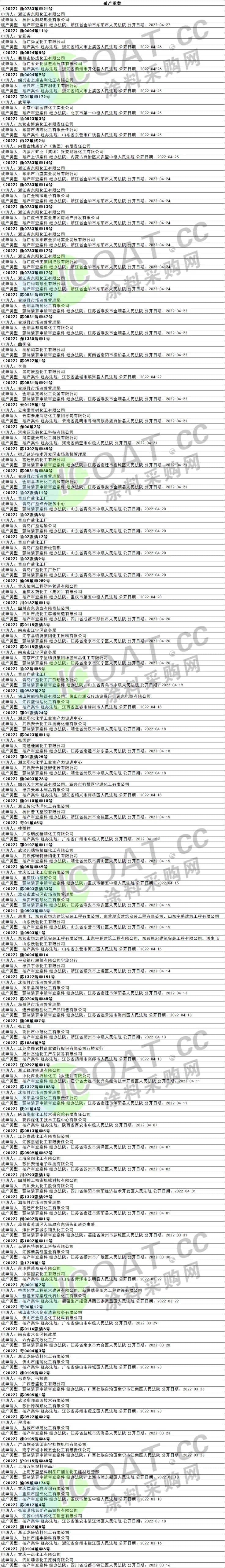 還有數百家化工企業自己申請或被其他企業申請破產重整,正式走向了“滅亡”之路。