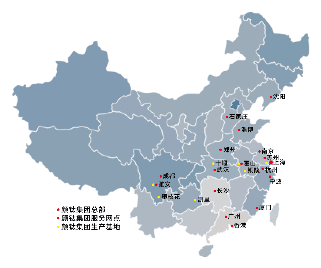 目前顏鈦在全國擁有全資及控股子公司15家、辦事處7家、控股及參股的原材料生產(chǎn)企業(yè)5家,海外子公司6家,年均貨物進(jìn)出量20余萬噸。