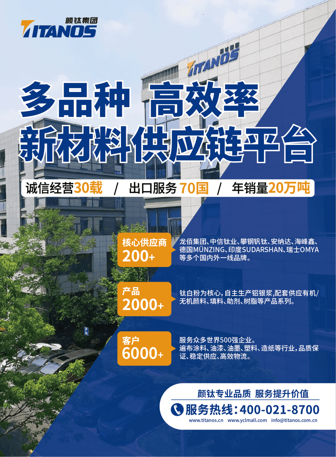 在鈦白粉行業(yè),有這樣一家鈦白粉企業(yè),專業(yè)生產(chǎn)和代銷鈦白粉產(chǎn)品,能夠根據(jù)不同行業(yè)的需求提供多種品類的鈦白粉產(chǎn)品,且各種優(yōu)勢特色能夠滿足多個領(lǐng)域的要求,在下游客戶群體中品牌美譽(yù)度極佳,它就是上海顏鈦實業(yè)有限公司(以下簡稱“顏鈦”)。三十余年來,顏鈦以鈦白粉為核心業(yè)務(wù),自主生產(chǎn)鋁銀漿等金屬顏料,配套經(jīng)營有機(jī)/無機(jī)顏料、助劑、填料、樹脂等2000多個品種。