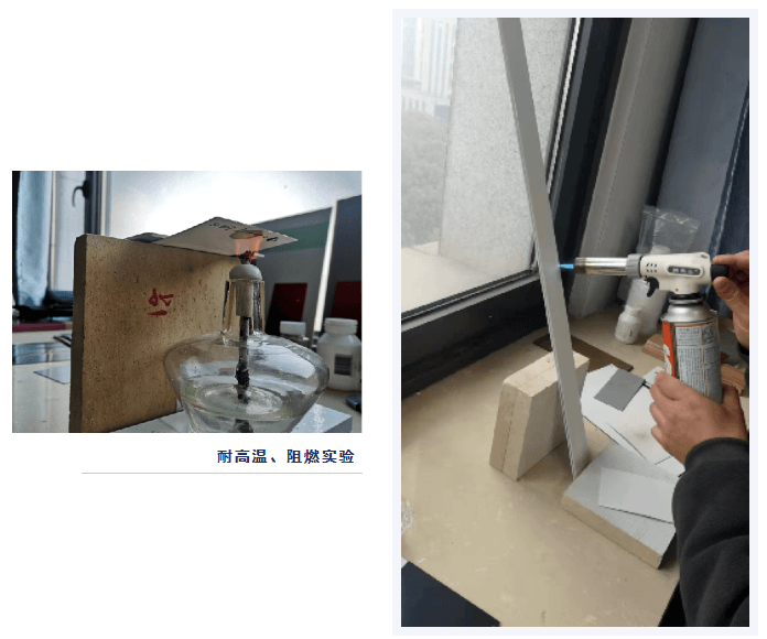 由于陶瓷涂層物理隔絕作用/金屬基材較好的導熱能力,柔性陶瓷水漆在使用復合涂層后仍保持了較好的耐高溫性能以及防止火焰蔓延的能力!