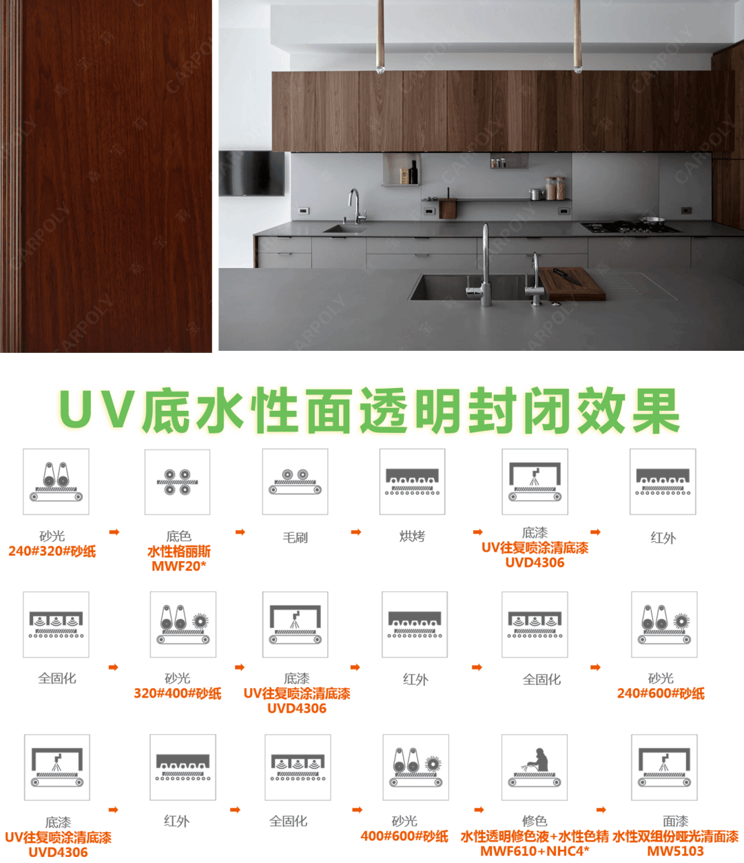 基材上,適用于中纖板、實木、實木貼皮等材質,施工寬容性好,可廣泛用于木門、成人套房、櫥柜、衛浴、酒店、定制等細分領域的涂裝。