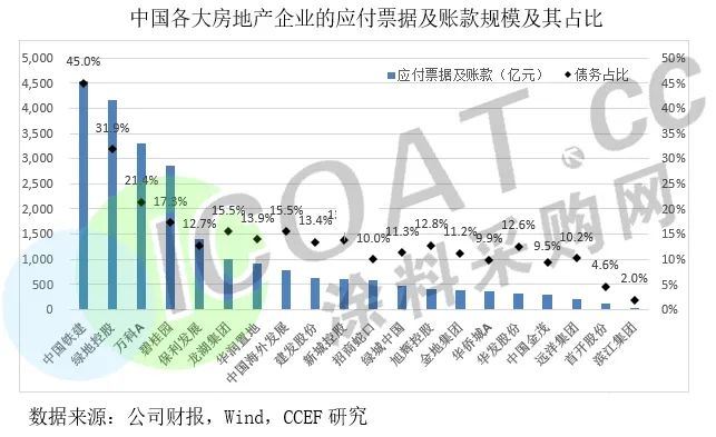 大環境的惡劣之下,房地產企業的生存遭遇了嚴峻考驗,在有息債務強監管的政策背景下,房地產企業使用商票的比例大幅提高,截止2021年底,中國鐵建、綠地和萬科的應付票據及賬款規模分別高達4528億、4158億和3305億,占其總債務比重分別為45.0%、31.9%和21.4%。粗略算來,截至去年年底,房地產行業的應付票據和賬款合計超過10000億元。2022年4月商票持續逾期企業共2193家,房地產業商票逾期企業達到1176家,占比54%。